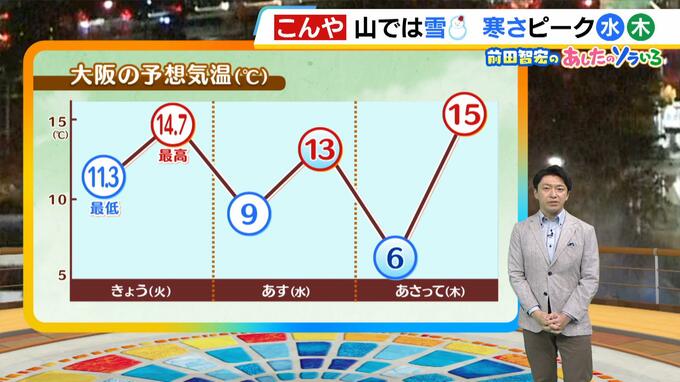 11月19日(水)の近畿地方は、寒気流入のピーク。山地では雪が降って、積もる所もありそうです。 冬型の気圧配置は次第に緩む見込みですが、上空にはこの時期としては強い寒気が流れ込むでしょう。北部は断続…