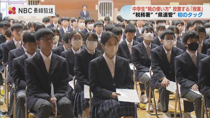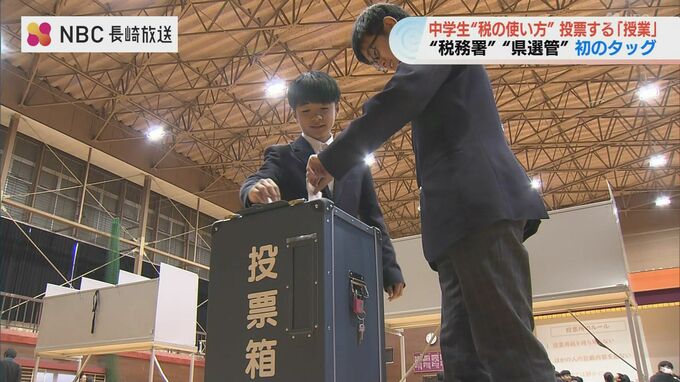 「税」をテーマに選挙の投票を体験する長崎県内初の出前授業が、長与町の中学校で行われました。