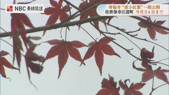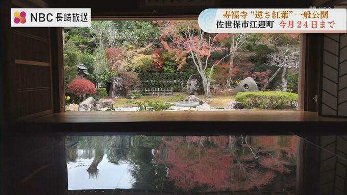長崎県内で寒さが本格化するなか、佐世保市の寿福寺ではこの季節の風物詩である「逆さ紅葉」が一般公開され、訪れた人たちを楽しませています。