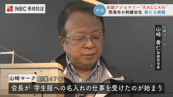 RACCANを作っているのは、西海市西海町にある山崎マーク。刺繍やプリント技術で主に、学校やスポーツチーム、企業などのオリジナルユニフォームやグッズ製作を手がけています。
