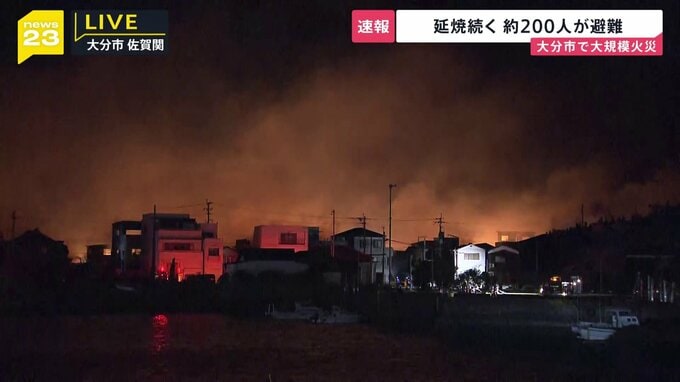 大分県大分市で住宅など20棟以上が燃える火事が起きています。火災の発生から6時間が経過しましたが、やはり住宅からは火が上がり続けています。風も非常に強く吹いていまして、煙が左から右へと流れていっていま…