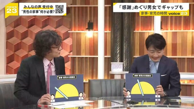 斎藤さんも藤森さんも子育て中のパパ。家事や育児をどれぐらい分担しているか。自己採点してもらいました。