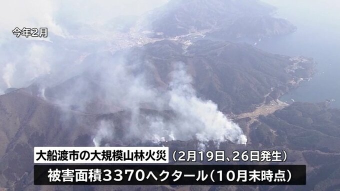 2月19日と26日に大船渡市で発生した山林火災による被害面積は、合わせて3370ヘクタールに上っています。