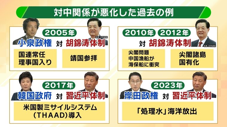 2005年の小泉総理(当時)の靖国神社参拝や、2012年の日本の尖閣諸島国有化をめぐっては、反日デモが激化しました。