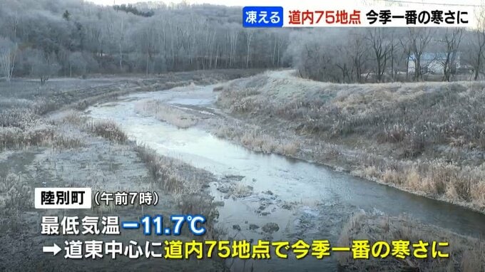 十勝地方の陸別町では、午前7時に最低気温マイナス11・7度を観測するなど、東部を中心に北海道内75の地点で今シーズン一番の寒さとなりました。