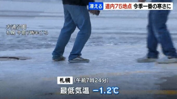 最低気温がマイナスになった札幌では、前日の雪が凍結し、歩道を慎重に歩く人の姿が見られました。