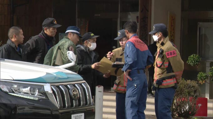 「警察や消防が続々と集まり、打ち合わせを行っています。この後、航空機が墜落した場所に向かいます」