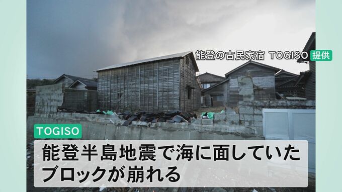 赤崎の旅館・TOGISOでは、能登半島地震で海に面していたブロックが崩れる被害に遭いました。