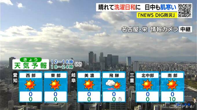予想最高気温は名古屋や岐阜などで14℃、高山で9℃と、日中も気温はあまり上がらないでしょう。夜は各地で気温が10℃を下回るため、暖かくしてお過ごしください。