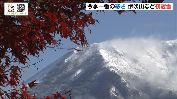 近畿地方は、今季1番の強い寒気の影響で各地に冬の便りが届きました 11月19日朝、山頂付近が雪化粧したのは滋賀県と岐阜県にまたがる標高1377mの伊吹山です。 彦根地方気象台は、19日朝伊吹山の初冠…