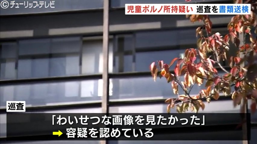 18歳未満の性的な動画を購入し所持していたとして、富山県警の巡査が児童ポルノ禁止法違反の疑いで書類送検されていたことが19日までにわかりました。
