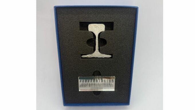 このレールは昭和期に地域の足として活躍した井笠鉄道の貴重な遺構で、鉄道史的にも価値が高いとされています。井原鉄道では、耐震補強工事完了を記念し、出土したレールを加工した記念品を関係者に配布。また、鉄道ファンや地域住民向けに数量限定で販売することも発表しました。