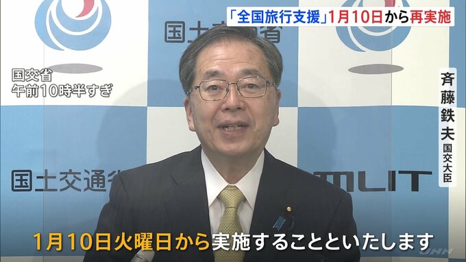 年末で終了予定の「全国旅行支援」について、観光庁は来月10日から割引率を引き下げて再実施すると発表しました。斉藤鉄夫 国交大臣「(全国旅行支援は)新たな行動制限が必要となる事態が生じないことを前提に、…