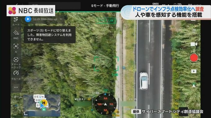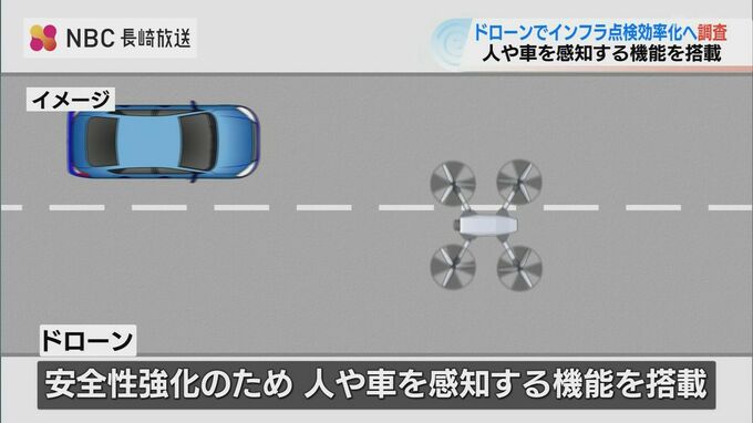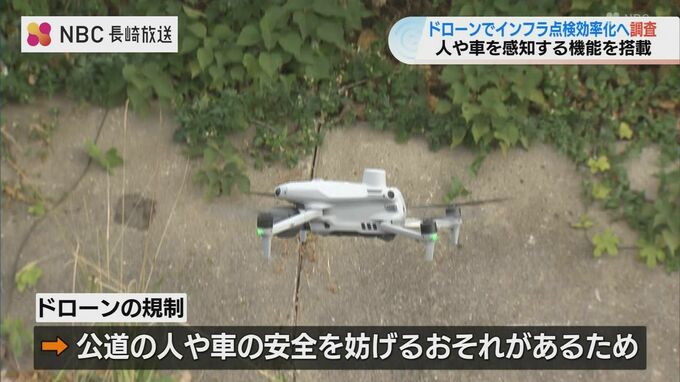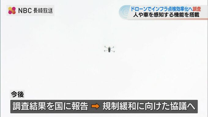 ドローンの公道上飛行に関する規制を緩和しインフラ点検の効率化などに役立てようと、実際の道路を使った実証調査が11月19日から長崎市で行われています。