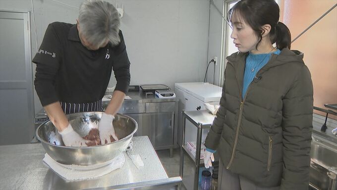 「ウナギの頭と骨とシカ肉を混ぜているところですね」