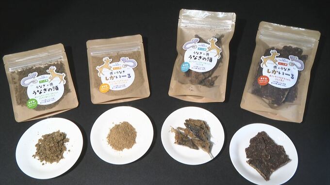 使い道の少ないウナギの頭やシカを使って大学教授のアドバイスをうけながら、およそ3年半かけてジャーキーやふりかけなど4種類を商品化しました。