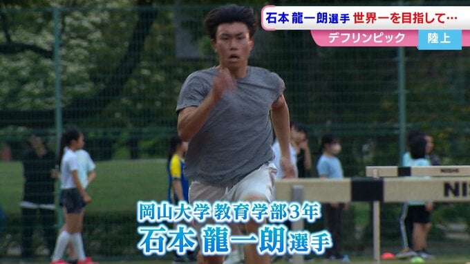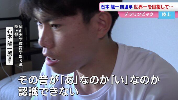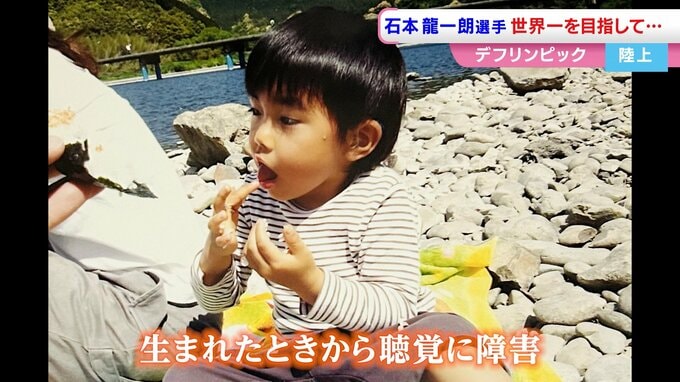 山口県出身の石本選手。3歳から、ろう学校で発音方法などを学び小学校からは普通学級へ。陸上をしていた父親の影響で中学生のときに陸上部に入部しました。