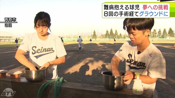 部員と同じく毎日の練習で汗を流していますが、異なるのはチームメートと並ぶと分かる148cmの小柄な体格です。
