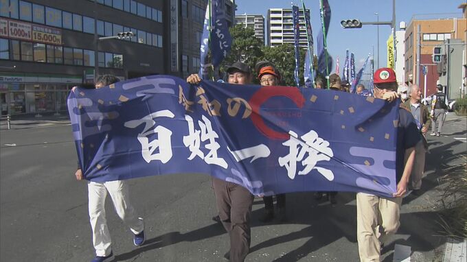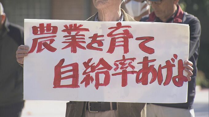 高齢化や後継者不足から農業の担い手が減る中、農家の所得補償やコメ増産への転換、そして食料自給率の向上を求めて、農家や市民ら約60人が参加しました。