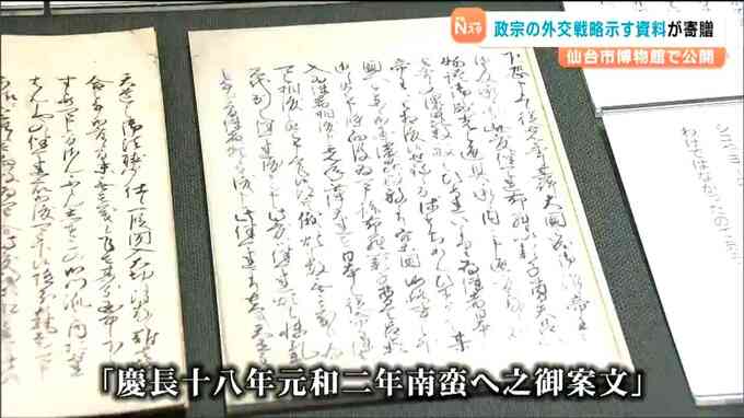 仙台市に寄贈されたのは、江戸時代初期の書物「慶長十八年元和二年南蛮へ之御案文」です。この書物は、支倉常長(はせくら・つねなが)ら慶長遣欧使節が海外の要人に届けた伊達政宗の文書の控えにあたるものです。…