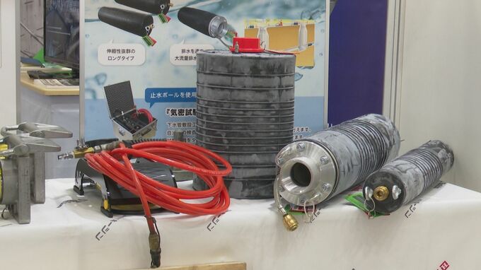 中には、浸水を一時的に防ぐエアーブロックや、災害など緊急時に設置可能な伸縮する仮設の橋なども展示されていました。