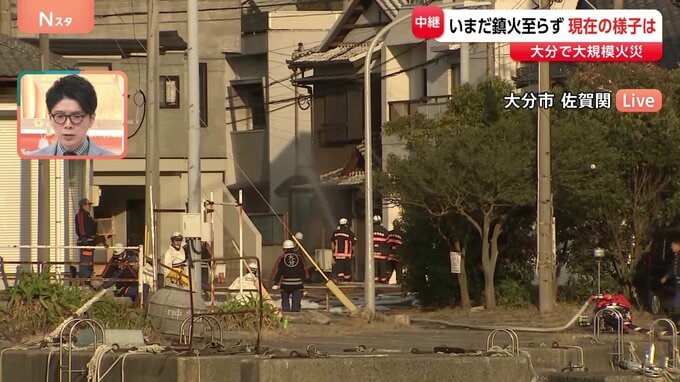 きのう、大分市で発生した大規模火災。間もなく発生から丸一日となりますが、いまだ鎮火には至っていません。それでは現在の状況を現場から高柳アナウンサーに伝えてもらいます。
