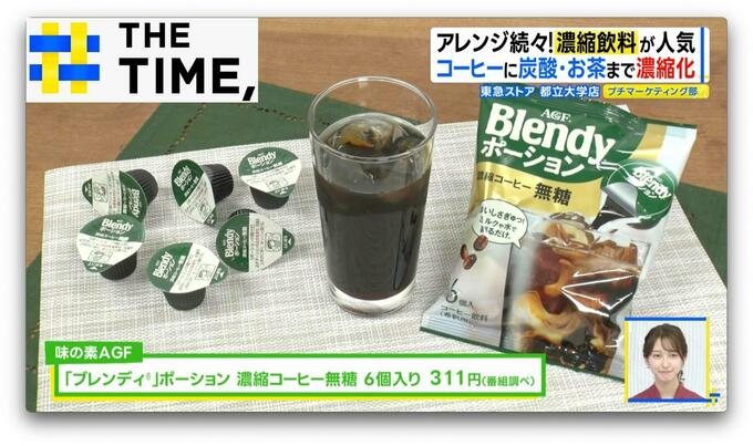 さらに、「『ブレンディ®』ポーション 濃縮コーヒー無糖」(味の素AGF/6個入・311円※番組調べ)はプチッと開けて入れるだけ。
