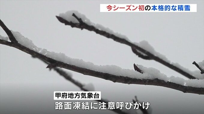 この後、天気は回復し、夕方からは晴れてくる見込みですが、14日の朝、標高の高いところでは路面凍結する恐れがあり甲府地方気象台は注意を呼びかけています。