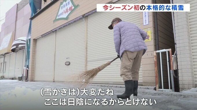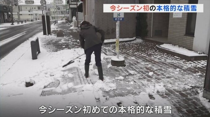 12日夜からの冷え込みで今シーズン初めての本格的な積雪となり、朝から雪かきをする人の姿が見られました。