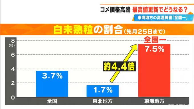 夏の厳しい暑さによって起こるコメの高温障害。粒が白く濁る「白未熟粒」の割合は、10月25日の段階で東海地方ではコメ全体の7.5%に。これは全国で一番高い割合です。