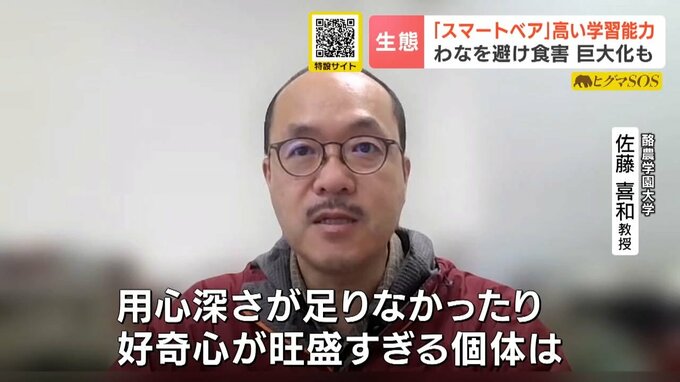 「用心深さが足りなかったり、好奇心が旺盛すぎる個体は、若い段階でわなに捕まって捕獲されていく可能性が高いが、大人にまでなった個体は非常に慎重で用心深い。わなの構造を理解したクマは入らずに、なんとか横から手を伸ばして餌だけ取れないかと考えると思います」