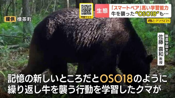 「記憶の新しい所だと、OSO18のように繰り返し牛を襲う行動を学習したクマがほとんど人に目撃されず、箱わなを設置してもワナを学習していて決してわなに入らない」