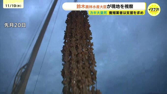 県によりますと、カキの大量死は9月下旬から10月上旬の短期間に起きたといいます。いまのところ被害が確認できたのは、呉市より東の県中部と東部の海域で、7割から9割が死ぬという深刻な状況です。