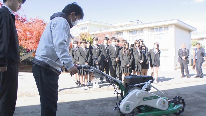 JA共済連長野は農業の担い手育成につなげようと、今年から農業カリキュラムを実施している県立高校に実習などで使う機械を贈る活動を始めました。