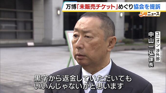 万博の「未販売チケット」をめぐり、博覧会協会を提訴です。 (ユニオン・渉外部 中山一弘課長)「(チケットが)売れる状態だったのに売れなくなったというのは、われわれの責任ではなく、博覧会協会側が対策を…