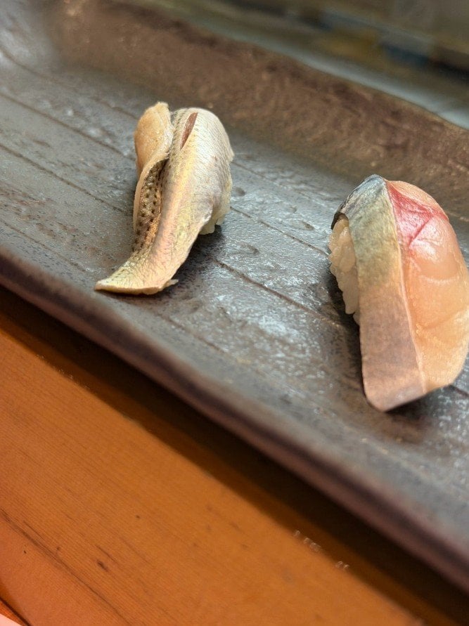 さらに食欲は止まらず、締めくくりとして寿司屋さんも訪問。「どうしても寿司が食べたくて〆は寿司屋でスシ」と川﨑さんは綴っています。店内の雰囲気や美しく盛られた握り寿司の写真も投稿されました。