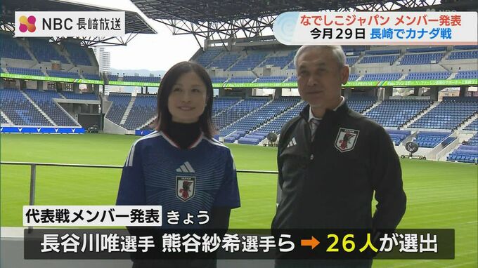 12日には佐々木委員長自ら元なでしこジャパンの鮫島さんとスタジアムを視察していて、きょうはそのピッチに立つ代表戦のメンバーが発表されました。キャプテンの長谷川唯選手やベテランの熊谷紗希選手ら26人が選出されています。