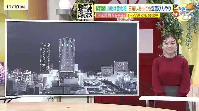 きょう19日(水)の広島県内は、寒気の影響で北部を中心に午前中まで雪や雨が降りました。山地や標高高いところでは雪化粧した所もありました。南部では日差しが届きましたが、午後は雲が多くなり、空気がひんや…