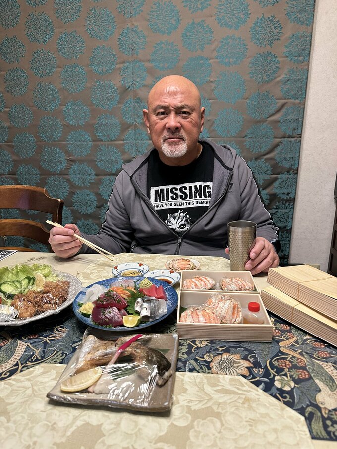 元プロレスラーの武藤敬司さんが自身のXを更新。アメリカから帰国し、その日の夕食に寿司と友人から届いた旬の香箱蟹を楽しんだことを報告しました。