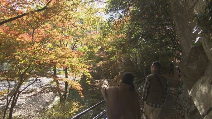 19日は平日でしたが、多くの人が遊歩道を散策して紅葉と渓谷美を楽しんでいました。