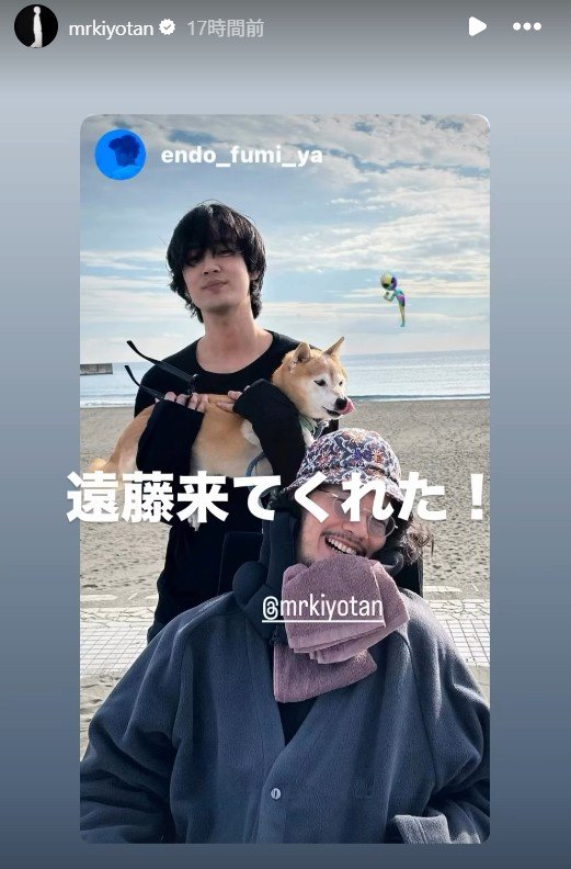 清原翔さんは、「遠藤来てくれた!」と綴ると、俳優の遠藤史也さんが、インスタグラムのストーリー機能にアップした画像にコメント。