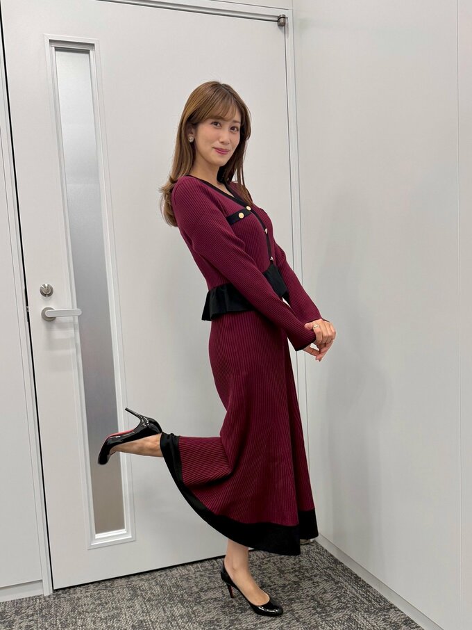 投稿された画像では、ワインレッドの衣装を身に着けた、中川安奈さんが様々なポーズを取る様子が見て取れます。