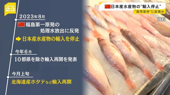 日本産水産物をめぐっては、2023年8月に東京電力・福島第一原発の処理水放出に反発した中国が輸入を停止しました。