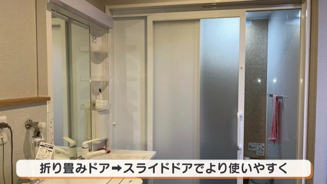 さらに、折り畳みも多い浴室の扉をスライド式にすることで、力が少ない高齢者でもより使いやすくなっています。
