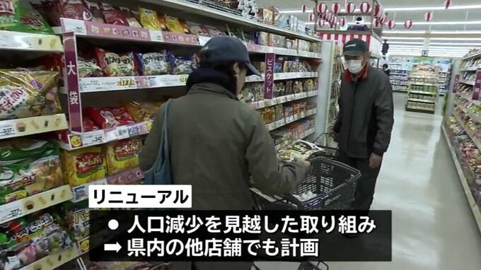 釜石に続いて2か所目となるサンデーの新業態へのリニューアルは人口減少を見越した取り組みで、県内の他の店舗でも計画しているということです。