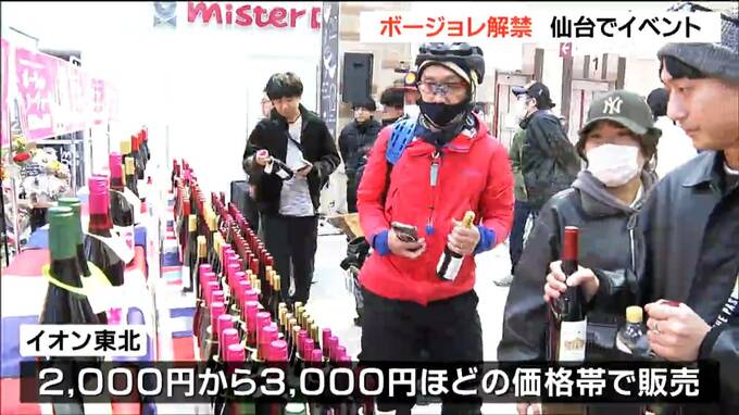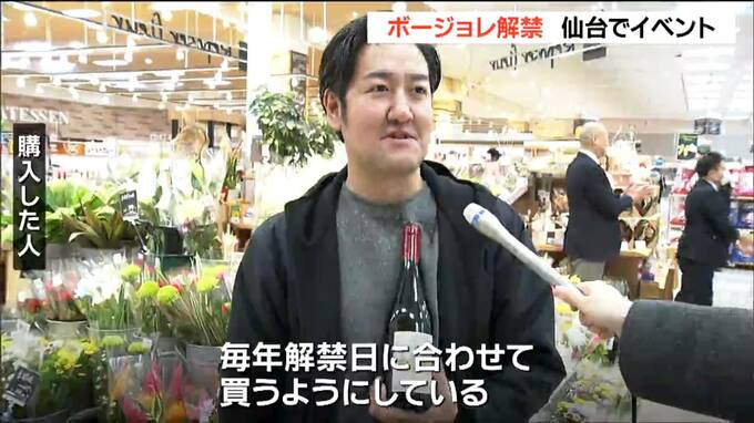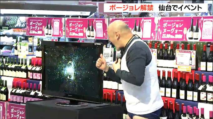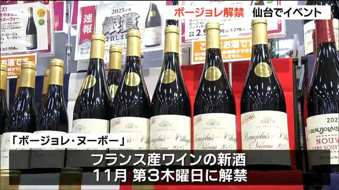 フランス産ワインの新酒「ボージョレ・ヌーボー」が11月20日午前0時に解禁され仙台市内のスーパーでは販売開始を祝うイベントが開かれました。