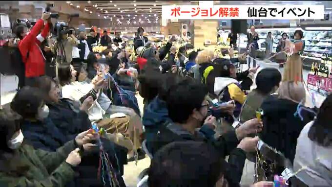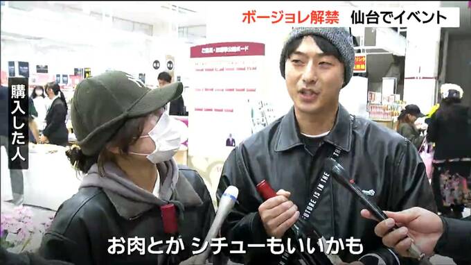イオン仙台幸町店では、お笑い芸人のくまだまさしさんがゲストとして登場し、約40人の客とともに解禁を祝いました。
