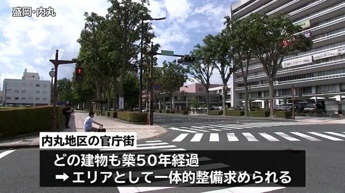盛岡市は官公庁や企業の集積する内丸エリアの、50年先の姿を想定した再整備に向けて、基本方針案をまとめました。