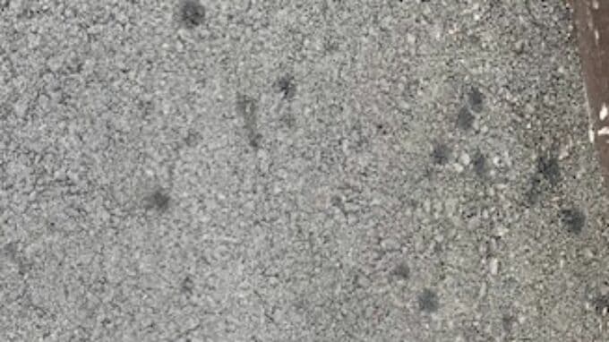 アスファルトにこんな小さなシミの散らばりをみつけたら、それはカメムシが踏まれた跡かもしれません。