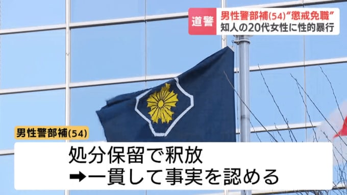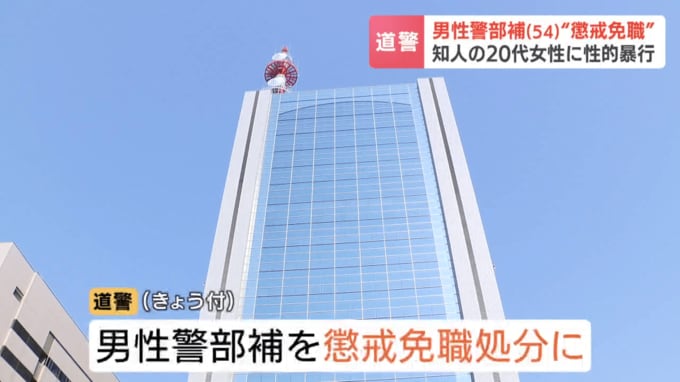 札幌市の20代の知人女性に性的暴行を加えた疑いで逮捕された54歳の男性警部補について、北海道警は、20日付で懲戒免職処分としました。